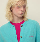 CASHMERE BLENDED CARDIGAN ROUND NECK ESSENTIAL_TURQUOISE