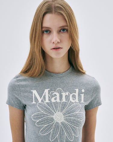 CROPPED TSHIRT FLOWERMARDI_GREY IVORY