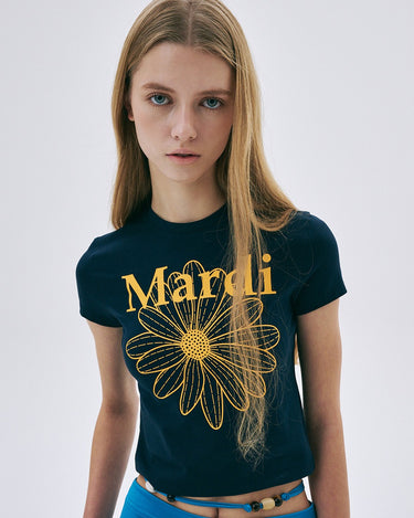 CROPPED TSHIRT FLOWERMARDI_NAVY TANGERINE