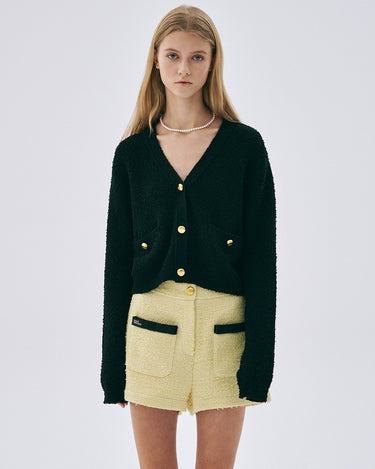 LINEN CROPPED CARDIGAN V NECK_BLACK
