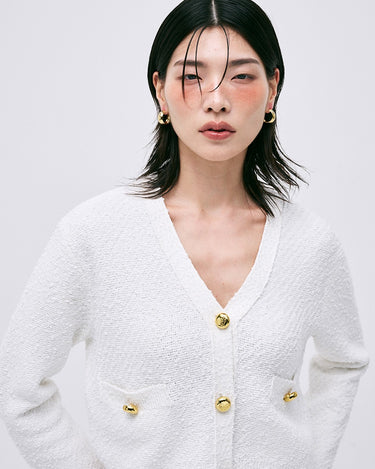 LINEN CROPPED CARDIGAN V NECK_WHITE