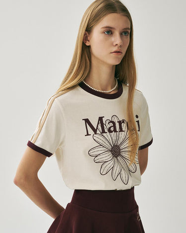 SLIM RINGER TSHIRT FLOWERMARDI_CREAM BURGUNDY