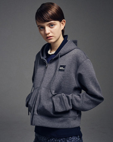NEOPRENE CROPPED HOODY ZIP UP_CHARCOAL