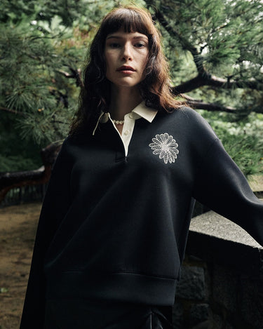 NEOPRENE CROPPED SHIRT PIQUET FLOWER_BLACK IVORY