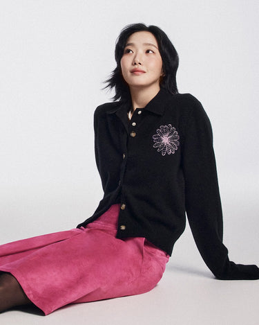 RACCOON BLENDED CARDIGAN V NECK_BLACK PINK