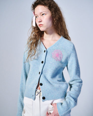 RACCOON BLENDED CARDIGAN V NECK_MINT PINK