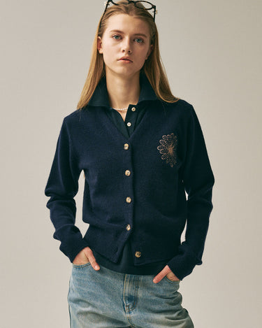 RACCOON BLENDED CARDIGAN V NECK_NAVY BEIGE