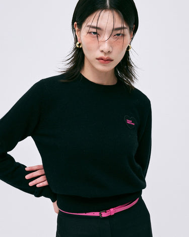 RACCOON BLENDED ROUND NECK HEART LOGO_BLACK