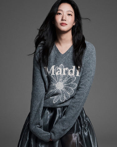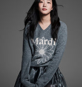 RACCOON BLENDED V NECK FLOWERMARDI_GREY IVORY