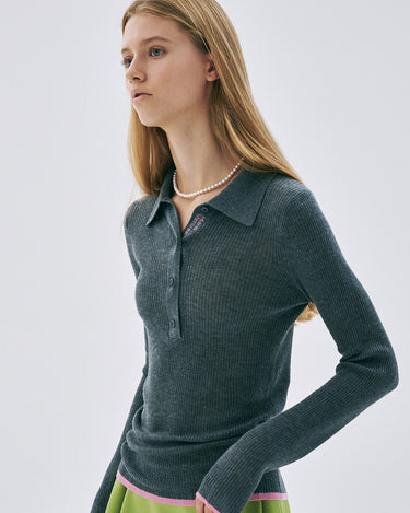 RIBBED KNIT SLIMFIT TOP_CHARCOAL