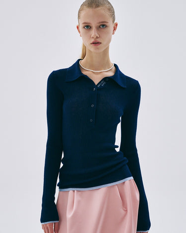 RIBBED KNIT SLIMFIT TOP_NAVY