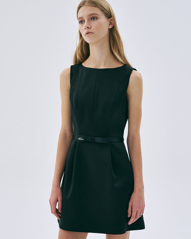 RIBBON BELT MINI SLEEVELESS DRESS_BLACK