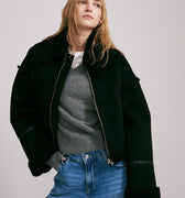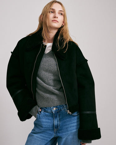 SHEARLING CROPPED MUSTANG JACKET_BLACK