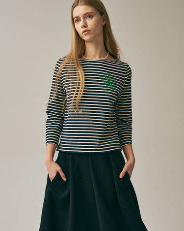 SLIM TSHIRT 3/4 SLEEVE STRIPE_NAVY GREEN