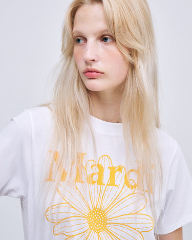SLIM TSHIRT FLOWERMARDI_WHITE TANGERINE