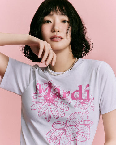 SLIM TSHIRT TRIPLE FLOWER_WHITE PINK