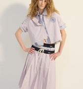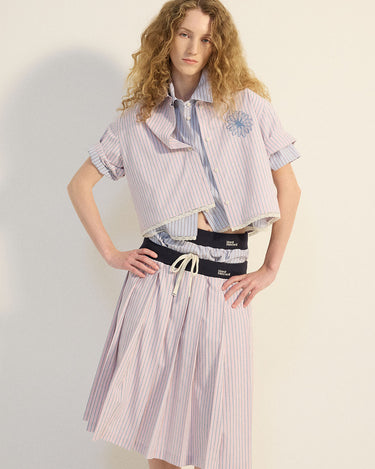 COTTON PLEATED MIDI SKIRT STRIPE_PINK