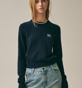 CASHMERE BLENDED ROUND NECK SQUARE LOGO_NAVY