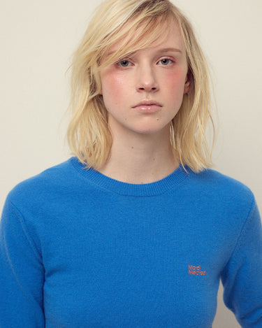 CASHMERE BLENDED TOP SHORT SLEEVE ESSENTIAL_BLUE