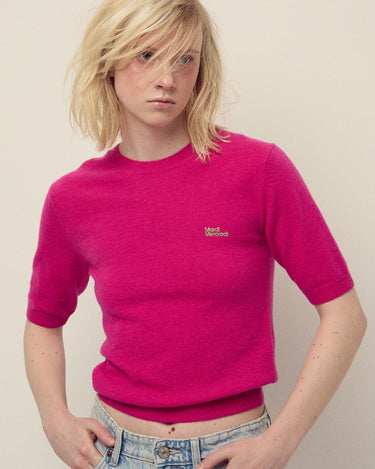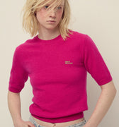 CASHMERE BLENDED TOP SHORT SLEEVE ESSENTIAL_FUCHSIA