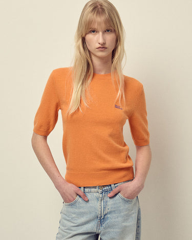 CASHMERE BLENDED TOP SHORT SLEEVE ESSENTIAL_ORANGE