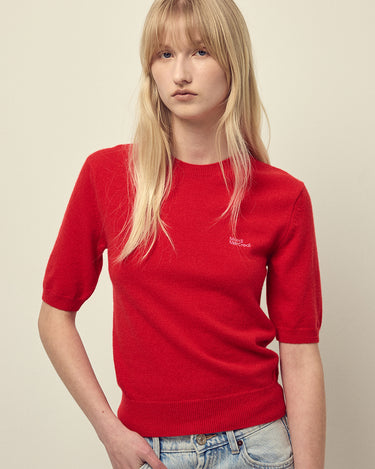CASHMERE BLENDED TOP SHORT SLEEVE ESSENTIAL_RED