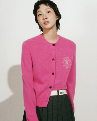 RACCOON BLENDED CARDIGAN ROUND NECK_FUCHSIA PINK