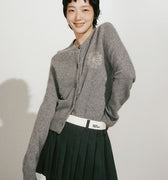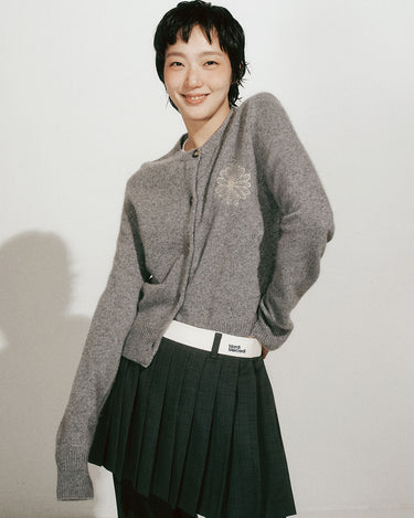 RACCOON BLENDED CARDIGAN ROUND NECK_GREY CREAM