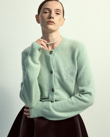 RACCOON BLENDED CARDIGAN ROUND NECK_MINT MINT