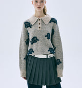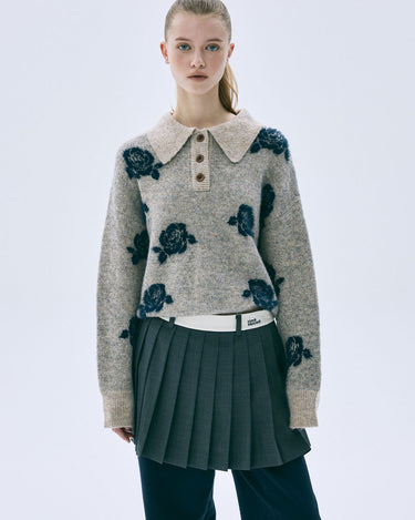 WOOL BLENDED JACQUARD TOP ROSE_BEIGE NAVY