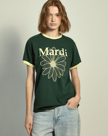SLIM RINGER TSHIRT FLOWERMARDI_GREEN LEMON