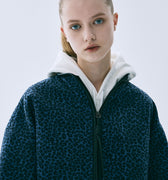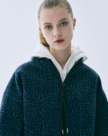 LEATHER TRIM FLEECE JACKET LEOPARD_BLUE