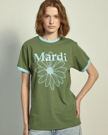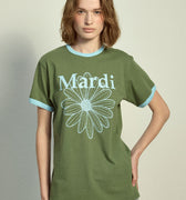SLIM RINGER TSHIRT FLOWERMARDI_OLIVE SKY