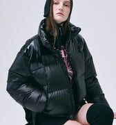 CROPPED DOWN JACKET COLOR BLOCK_BLACK