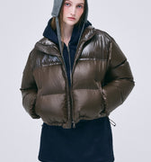 CROPPED DOWN JACKET COLOR BLOCK_BROWN