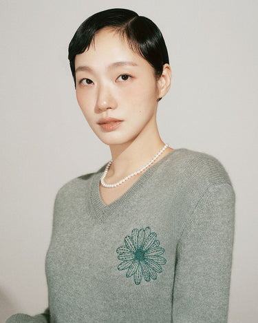 RACCOON BLENDED V NECK_MINTGREY