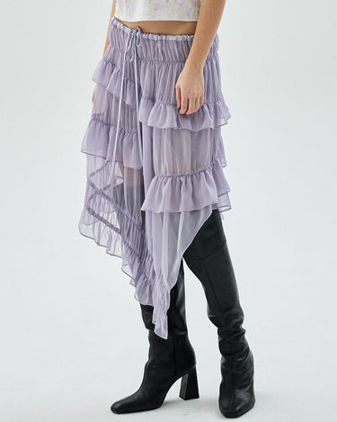 CHIFFON MIDI SKIRT FRILL_LAVENDER
