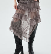 CHIFFON MIDI SKIRT FRILL_TAUPE