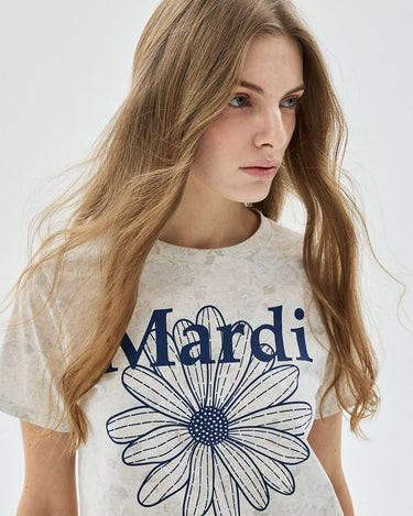SLIM TSHIRT FLEUR FLOWERMARDI_ASHBLUE NAVY