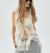 CHIFFON SLEEVELESS VEST FRILL_CREAM