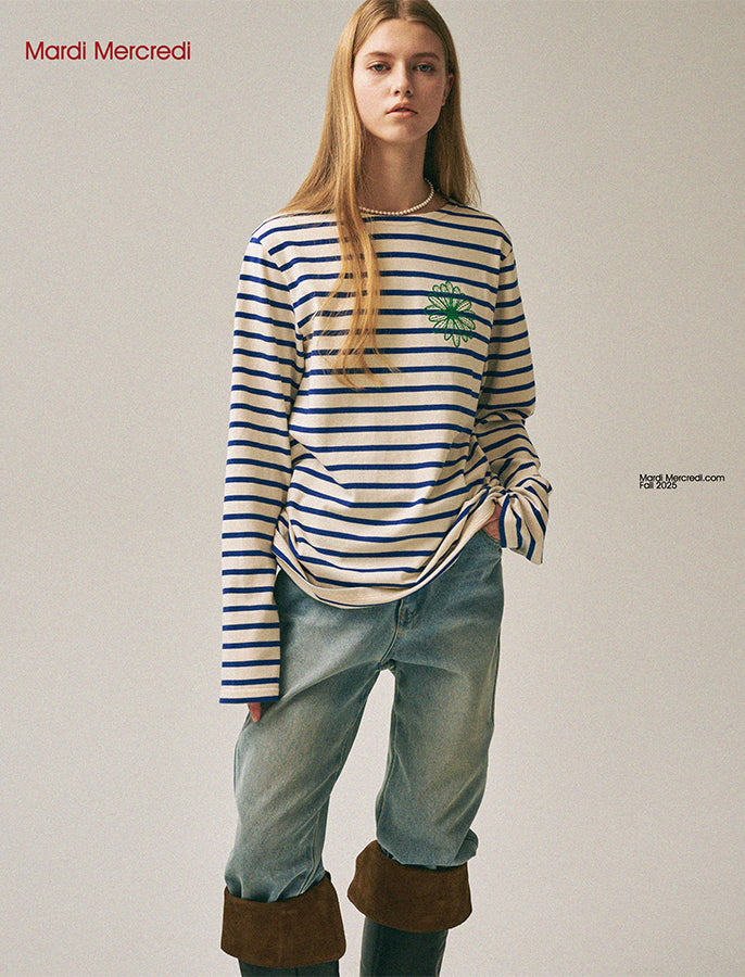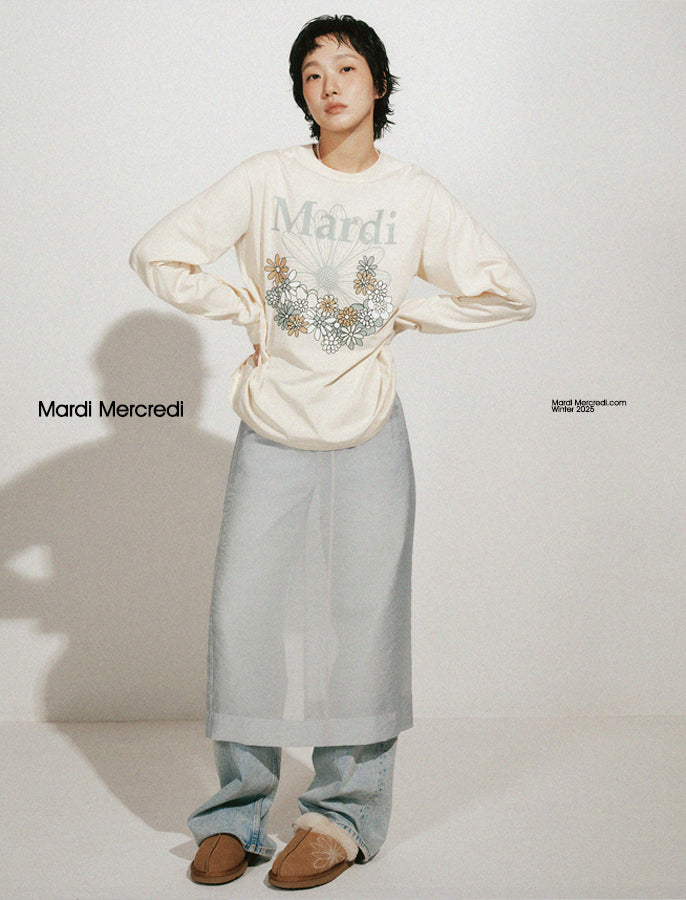 TSHIRT LONG SLEEVE FLOWERMARDI JARDIN_CHARCOAL IVORY