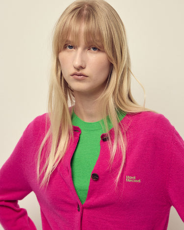 CASHMERE BLENDED CARDIGAN ROUND NECK ESSENTIAL_FUCHSIA