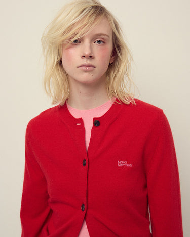 CASHMERE BLENDED CARDIGAN ROUND NECK ESSENTIAL_RED