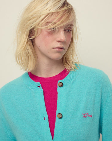 CASHMERE BLENDED CARDIGAN ROUND NECK ESSENTIAL_TURQUOISE