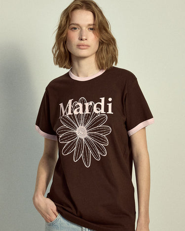 SLIM RINGER TSHIRT FLOWERMARDI_BROWN PALEPINK