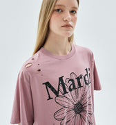 TSHIRT FLOWERMARDI CRACKED DESTROYED_VINTAGEPINK BLACK