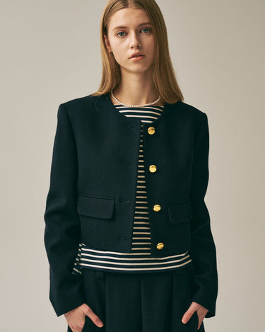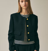 WOOL CROPPED JACKET ROUND NECK_NAVY